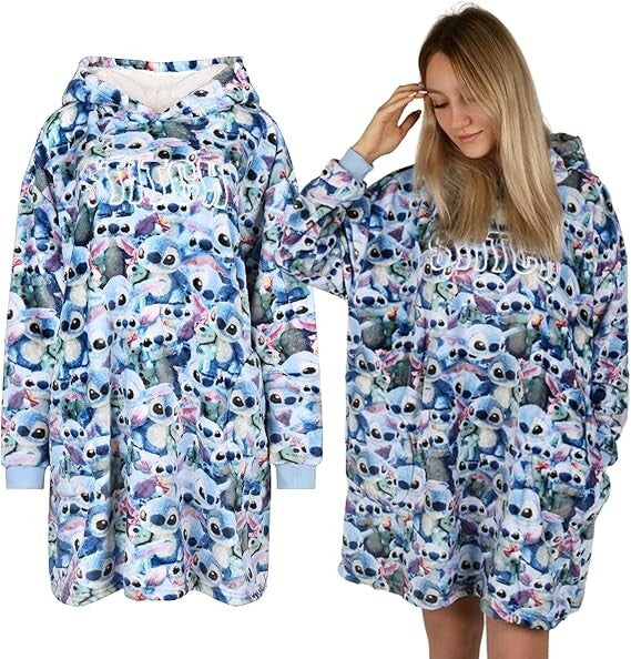 The hoodie is available in a size M/L and is suitable for women of all ages. It is perfect for regular use and is sure to become a favourite in your wardrobe. Get ready to snuggle up in style with this Disney Lilo & Stitch Women's Ladies Hoodie Hooded Blanket from Primark.