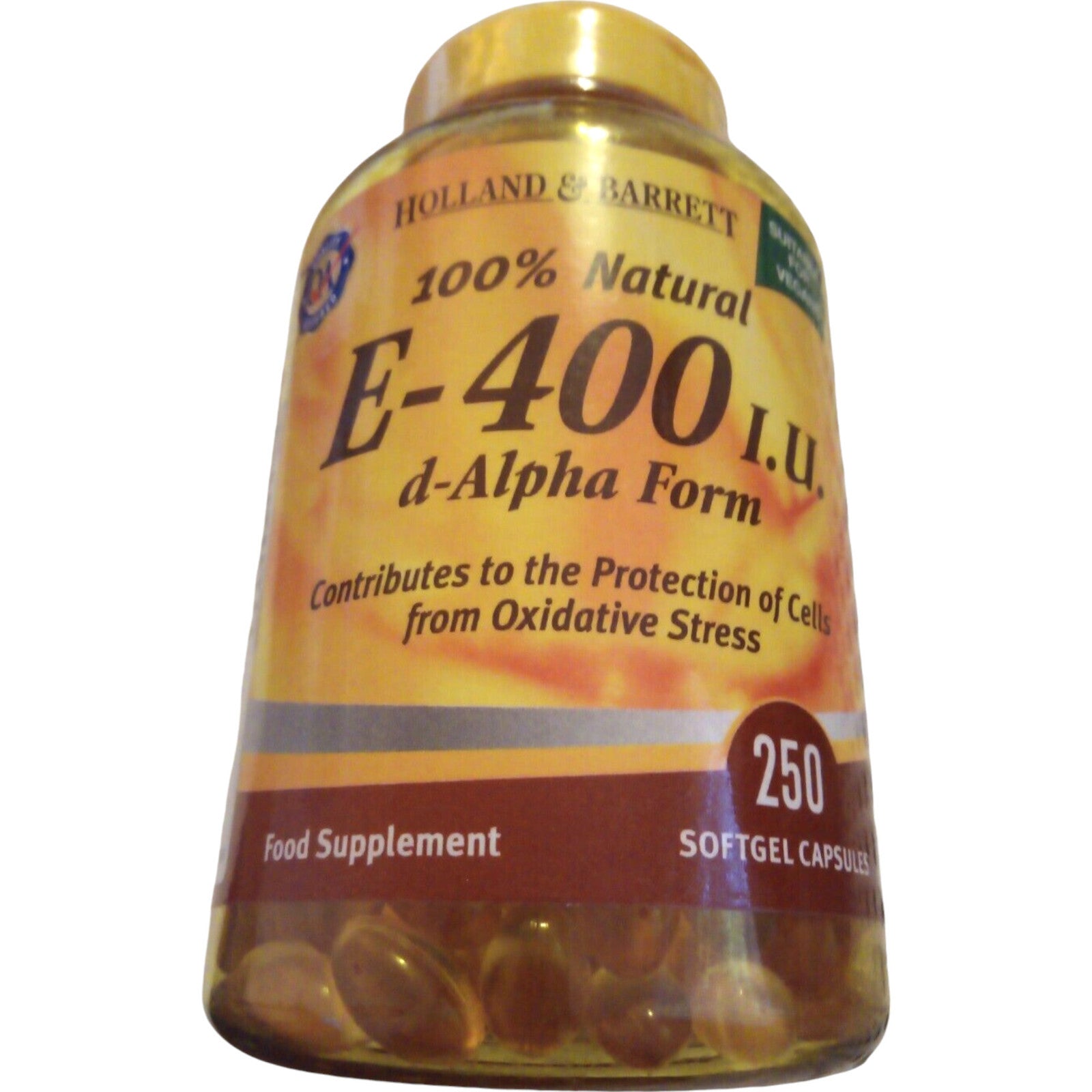 Holland & Barrett Vitamin E 400iu 250 Softgel Capsules.